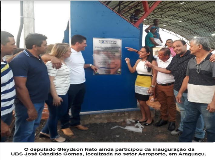 De Alvorada, Gleydson Nato seguiu para Araguaçu, onde foi recepcionado pelo prefeito Quinca Nunes e demais autoridades onde participou da inauguração da UBS José Cândido Gomes, localizada no setor Aeroporto.
