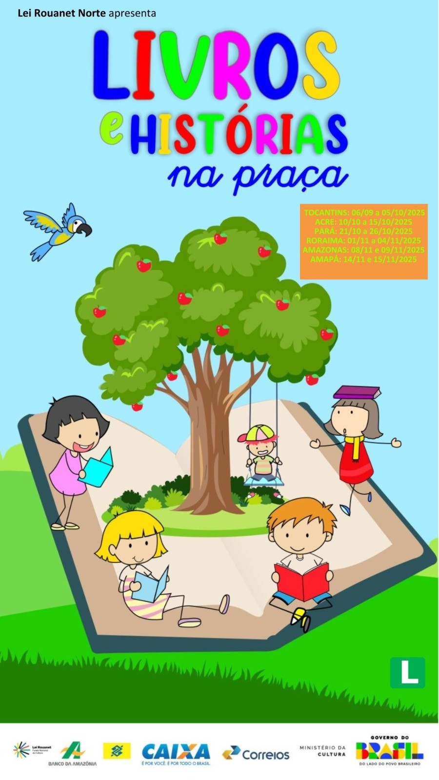 O projeto Livros e Histórias na Praça realizou uma série de ações culturais gratuitas em municípios da Região Norte, com foco na formação de leitores e na valorização da cultura popular. A iniciativa foi selecionada pelo Edital Rouanet Norte e percorreu 10 municípios, promovendo atividades em espaços públicos e ampliando o acesso ao livro e à leitura para crianças e famílias.